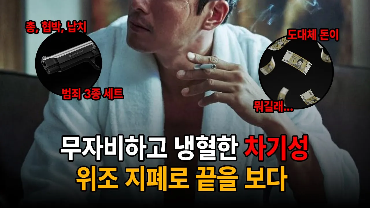 지폐 위조 범죄가 일어나던 공장에서 차기성은 동료와 불화가 생기자 권총을 들고 한 여성을 인질로 잡은 채 자신의 동료를 협박했다. 동판 거래가 자신이 생각한 대로 이루어지지 않자 차기성은 권총 세례를 퍼부은 뒤 위조 지폐 동판을 훔쳐 달아났고 경찰과 추격전을 펼쳤지만, 무사히 도망치고 말았다. 구리 덩어리에 정신 팔려 사람까지 죽이는 게 상식이 있는 놈일까.